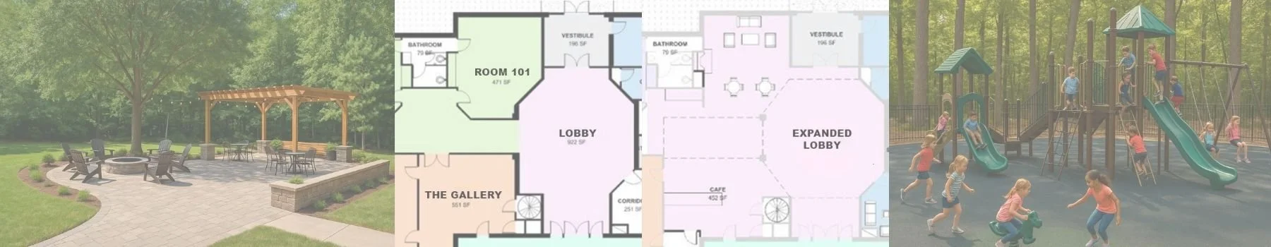 We believe God is calling us to take the next step—to create space for deeper connection. That’s why we’re launching the Belong Initiative: a bold plan to open up and transform our gathering environment at the Midlothian campus. By reconfiguring our current space, we will double the lobby - creating a welcoming setting where people can pause, meet others, and build relationships. We will also make some needed updates to our Worship Center and gym. Outside, we’ll add a beautiful stone patio with a fire pit, tables, and pergola for conversation over coffee or meals, as well as a top-quality playground nestled in the woods—creating a vibrant place for families and neighbors at all stages of life to gather. But this initiative is more than just construction. It’s about cultivating a culture of community—bringing people in, loving them well, and leading them to the life-changing Jesus.